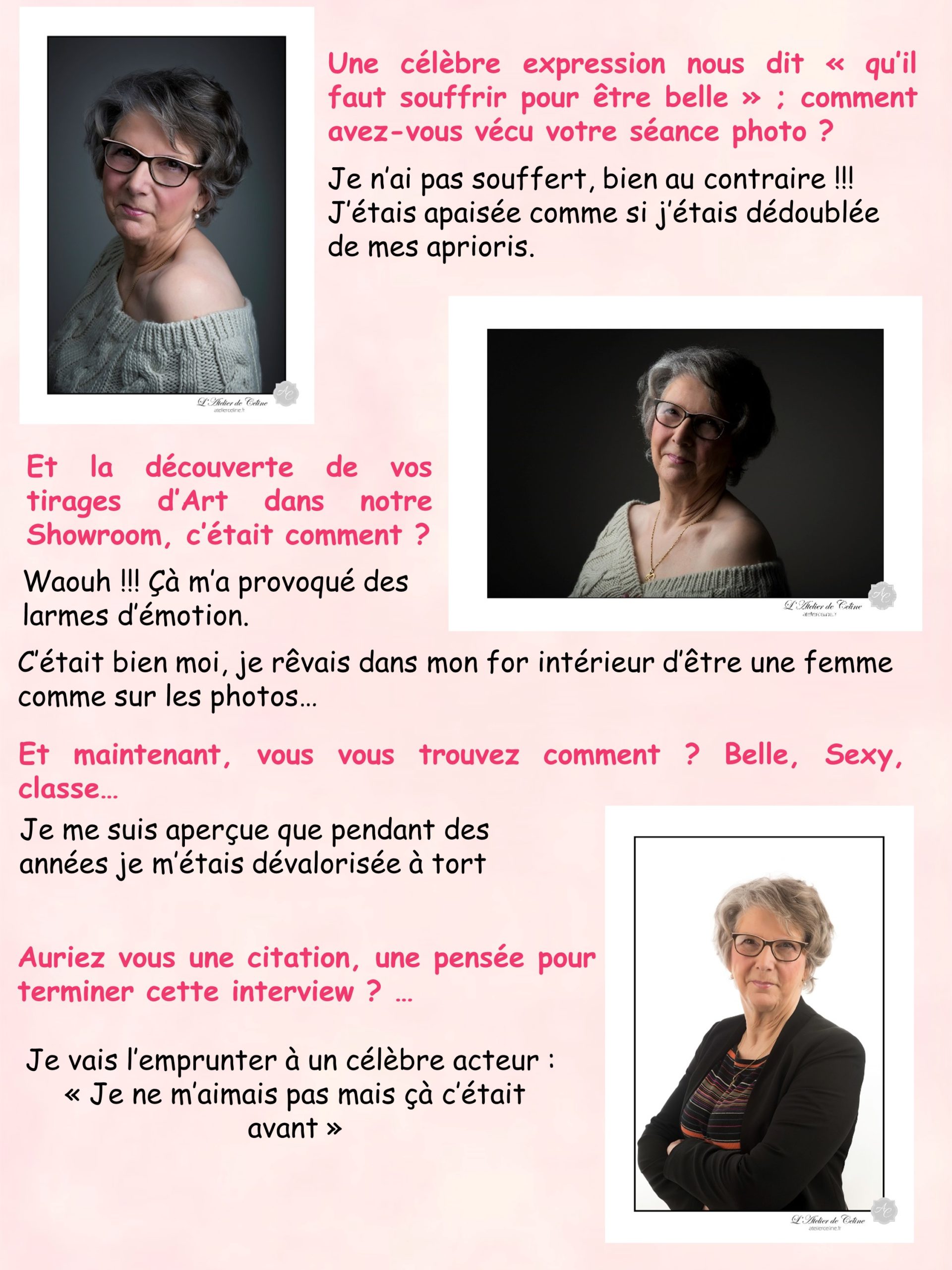 Maquillée, coiffée, elle s’est laissée guider par Céline pour son shooting d’1 heure